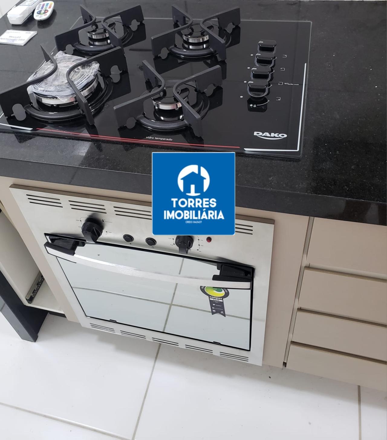 Cozinha com área de serviço integrada, armários planejados, forno e cooktop
