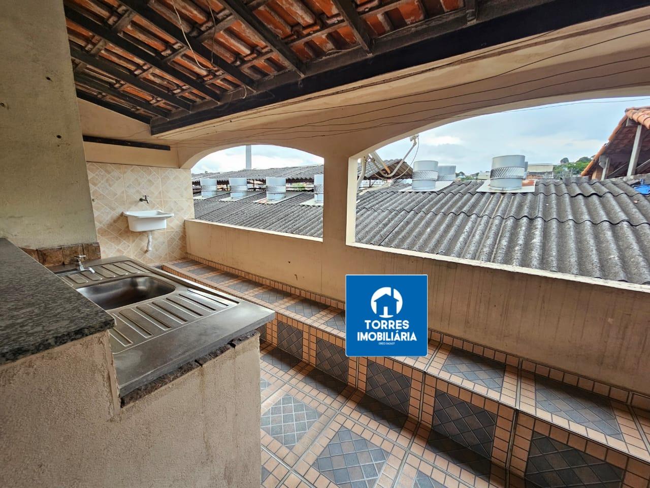 Casa com 3 quartos, 1 suíte, 3 banheiros, 2 vagas de garagem, terraço com telhado colonial com cozinha e churrasqueira.